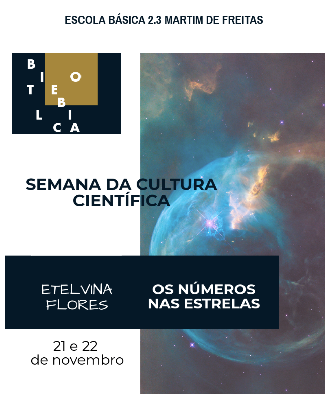 No dia 21 de novembro, no âmbito da Semana da Cultura Científica, a Senhora Coordenadora do Departamento de Ciências Exactas, realizou uma palestra para todas as turmas do 6º ano de escolaridade intitulada “Os Números nas Estrelas”.